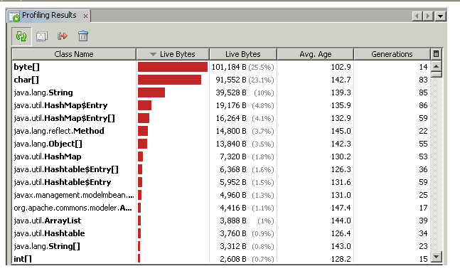 Default heap view sorted by size.