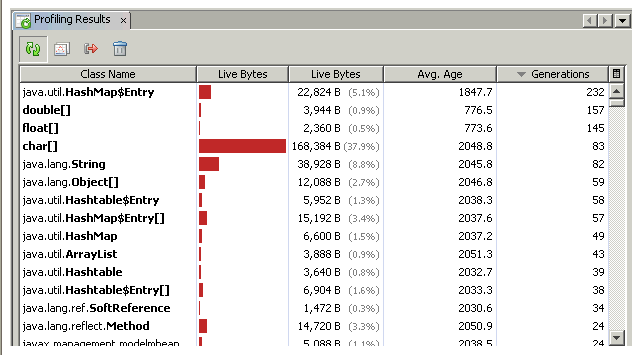Heap view sorted by generation count.