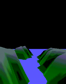 When done right, terrain provides a smooth-surface model of mountains, rivers, cliffs, hills, and other geographic phenomena. The point of terrain is that it gives users the impression they are traversing the real world. From a more abstract perspective, however, terrain really only involves variations in height. For instance, a grassy plain is a terrain with constant height (except for maybe some bumps and hills). On the other hand, a mountain region is a terrain that has significant height variations, creating large glyphs between areas that lend the illusion of mountains. Rivers are plains combined with curves that contain lower heights than the surrounding plain. For example, the terrain in Figure 1 is described by three areas of greater heightthe three green hillsand the rest is a deep gorge filled with water.
