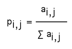 Turning the attractiveness (or otherwise) of the various paths into a decision about which path to take is relatively straightforward. If you add together all the attractiveness measures for each valid route and divide each measure by this total, you produce the probability that a given route will be taken, which is: