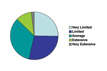 Who Responded At the beginning of the survey, I asked people to rate their skill set on a scale of 1 to 5, with 1 being novice and 5 being expert. Table 1 summarizes the results, and as you can see, on average the respondents appear to be highly skilled. I also asked about the size of their IT group, and as you can see in Table 2 there seems to be a fair representation of organizations. Figure 1 summarizes the extent of understanding, which people have regarding agile techniques, and clearly we have our work cut out for us54 percent believe that they have limited or very limited knowledge and 33 percent believe they have an average understanding. Unfortunately, I did not ask about the industry/sector that the organization is in or the geographical location of the organization. |