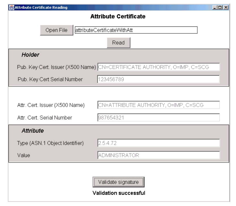 | Issuer | CN=Attribute Authority, O=IMP, C=SCG |