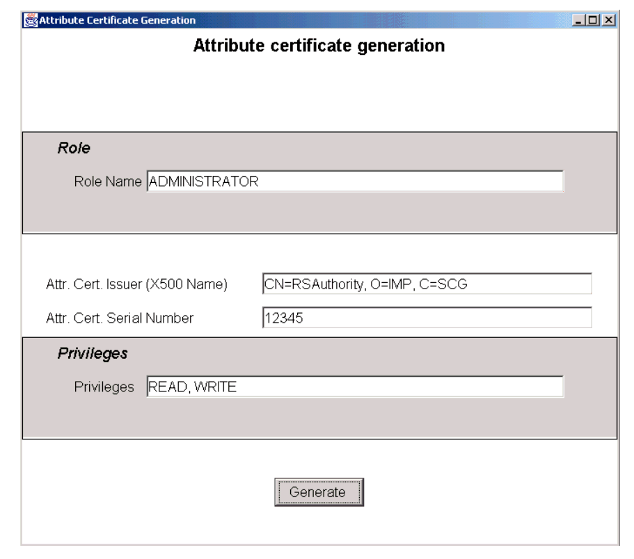 However, Java doesn't support attribute certificate generation and management. Therefore, we've implemented a provider named IMPCS ("Institute Mihailo Pupin Computer Systems") that works with attribute certificates.