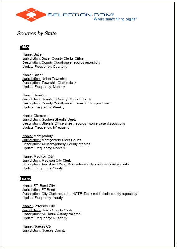 If a client had questions about which sources were being searched when a request was made, they could go to a Sources.aspx page that would load and display the PDF document. This workflow was fine when there were only a few changes a month, but as more sources became available from our vendor, maintaining this document became an hourly job and the employee started to fall behind on other work. Customers were getting upset because they felt the report they requested wasn't searching all available jurisdictions when, even though it was searching everything available, the source list didn't reference them. Additionally, by not listing the most current sources for our information, clients were beginning to think our product wasn't competitive.