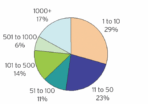 We sent the survey out to the DDJ mailing list and received 1137 responses in return. When it comes to primary job role, there were 585 developers, 168 IT managers, 107 project managers, 102 data professionals, and 174 people in other roles. A little more than 98 percent of the respondents were from North America, although I suspect that the trends the survey reveals are applicable internationallyI leave it up to you to be the judge of that. Respondents worked in various sizes of IT organizations (see Figure 1), 78 percent worked in the private sector, and 71 percent had 10 or more years of experience in IT.