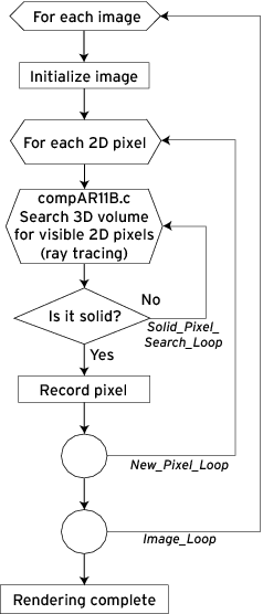 At the highest level, the Image_Loop could be parallelized so each thread renders a different image. Amide would then call this function multiple times, once for each image, displaying multiple images at the same time. This has two possible drawbacks: