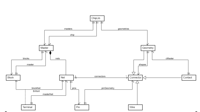 Structural design patterns are data structures that combine associations with inheritance. In Figure 2, classes Connector, Geometry, Wire, and Contact form a pattern Composite that allows complex hierarchical designs from several different types.