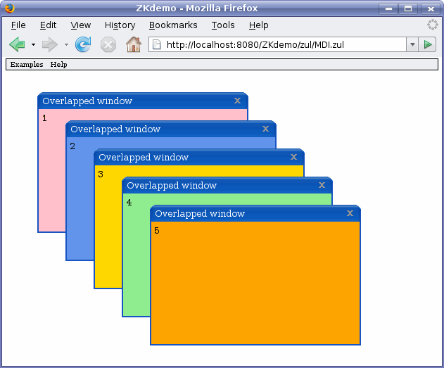 Displaying child windows is an important technique for constructing complicated UIs in rich client applications. For example, the process allows the separation of some controls into wizards, which help to fill out a form. Unfortunately, such techniques are unavailable in classic web applications. ZK supports the concept by allowing for one page to consist of many nested windows, which also can be modal. Each of these windows is placed in a separated CSS layer and, with help of a mouse, users can move, resize, or close them. For each window, a server creates its own event-handling thread. To use this technique in ZUL, you apply the <window> tag declared with parameter mode set to overlapped or modal; see Listing Six (online).