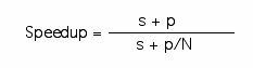 Note that, as N increases to infinity, the best speedup we can ever get is (s+p)/s. Figure 1 illustrates why a program that is half scalably parallelizable and half not won't scale beyond a factor of two even given infinite cores. Some people find this depressing. They conclude that Amdahl's Law means there's no point in trying to write multicore- and manycore-exploiting applications except for a few "embarrassingly parallel" patterns and problem domains with essentially no sequential work at all.