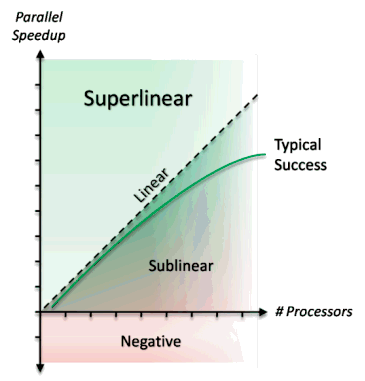 Sometimes, however, we can equip our performance plane with extra tools and safely break through the linear ceiling into the superlinear stratosphere. So the question is: "Under what circumstances can we use P cores to do work more than P times faster?" There are two main ways to enter that rarefied realm: