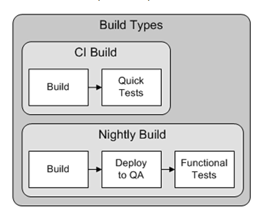 To understand build types, you need to understand that most of the time when we use the term "build" we're not exact in what we mean. Usually, when we talk about a "build" we are actually talking about something more than just a build. For example, when we talk about a "continuous integration build," we're talking about a process that extracts source code from the source-code manager (SCM), compiles it, packages it, and then runs some tests on the resulting artifacts. In contrast, a nightly build may extract source code from the source-code management system (SCM), compile it, package it, then deploy the artifacts to a QA server and run functional tests. The CI build and the nightly build are just two examples of build types.