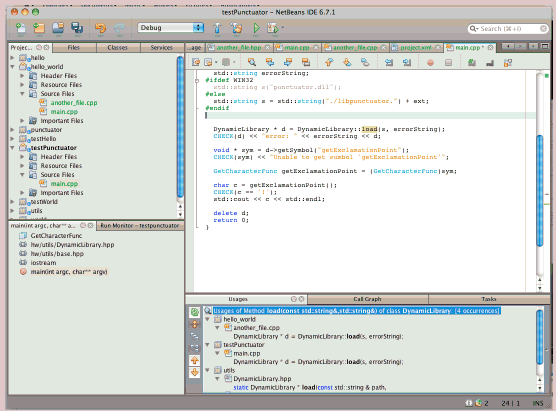 Back in the Hello world project (Enterprise Platinum Edition!!!) trenches Bob and the other developers picked NetBeans as their primary Mac and Linux IDE. NetBeans started as a Java IDE, but grew in leaps and bounds to become a component-based platform for application development in addition to an IDE that supports all the common programming languages in wide use today. The latest version is NetBeans 6.7.1 and it supports C/C++ development very well and even Python via a special early access.