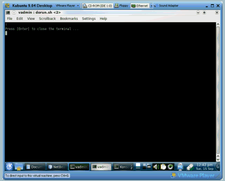 Bob was careful to copy the "libpunctuator.so" shared library to the directory of the testpunctuator program because the test always tries to load the shared library from the current working directory. They both noted with interest that on Kubuntu 9.04 programs run in an external terminal window (see Figure 5) as opposed to the internal NetBeans window on the Mac OS X.