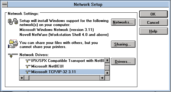 Figure 3: A WfWG/TCPIP32 Setup: Screen 1