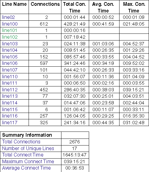 Figure 1: RAS Utilization Report - Line Detail - 'squid'