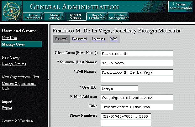 Figure 6: Netscape Suitespot General Administratio panel