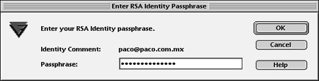 Figure 4: When RSA authentication is used, the passphrase is required to unlock the private key. The public key must reside in