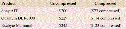 Table 6: Cost per GB of storage