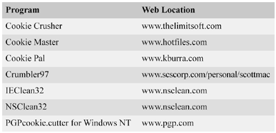 Table 2: Cookie manager utility programs