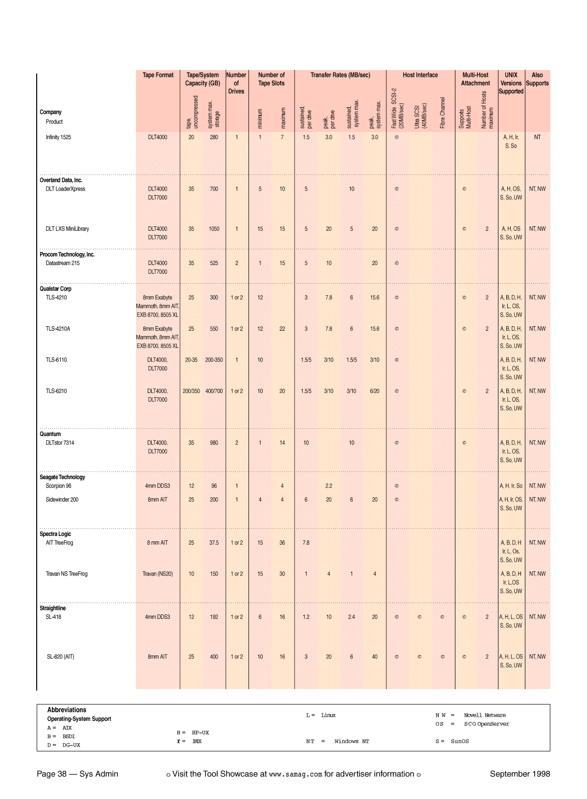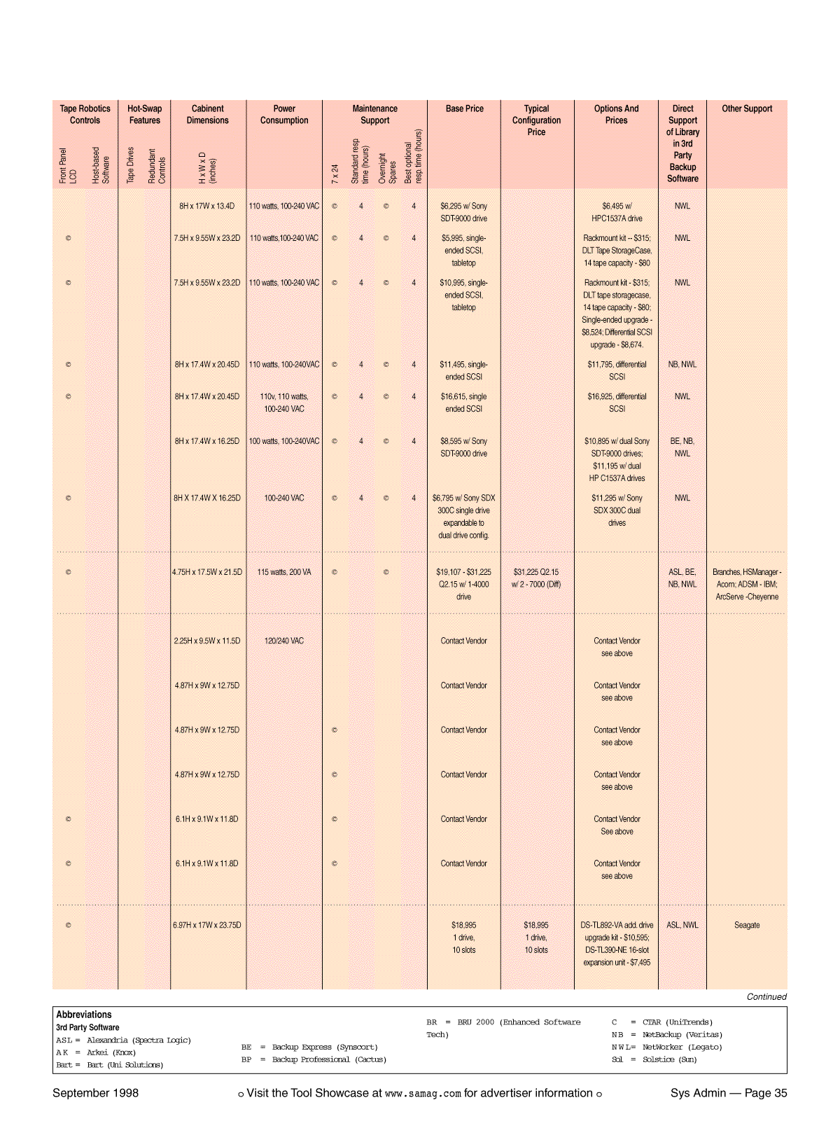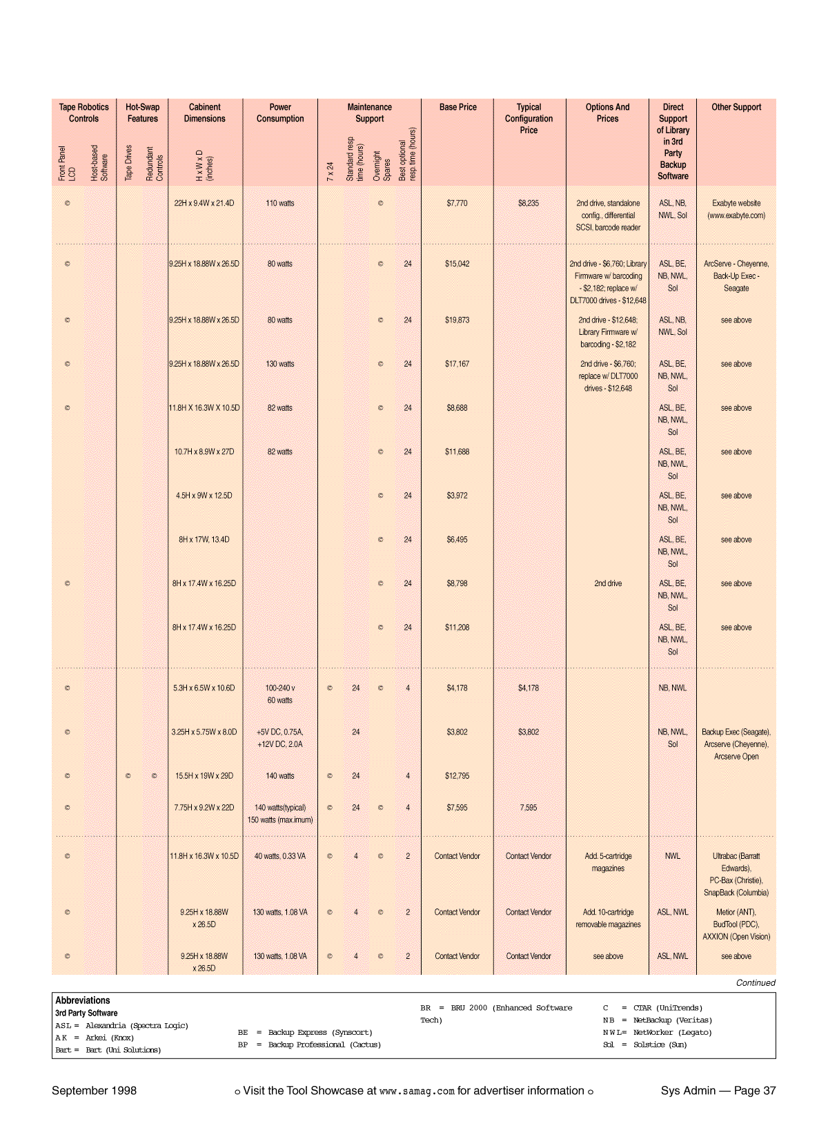 Table 2: Desktop Tape Library Buyer's Guide
