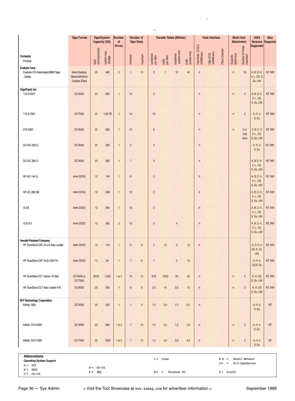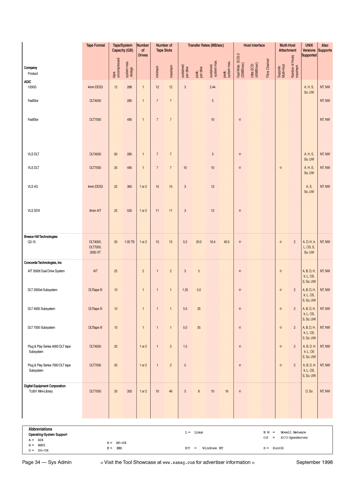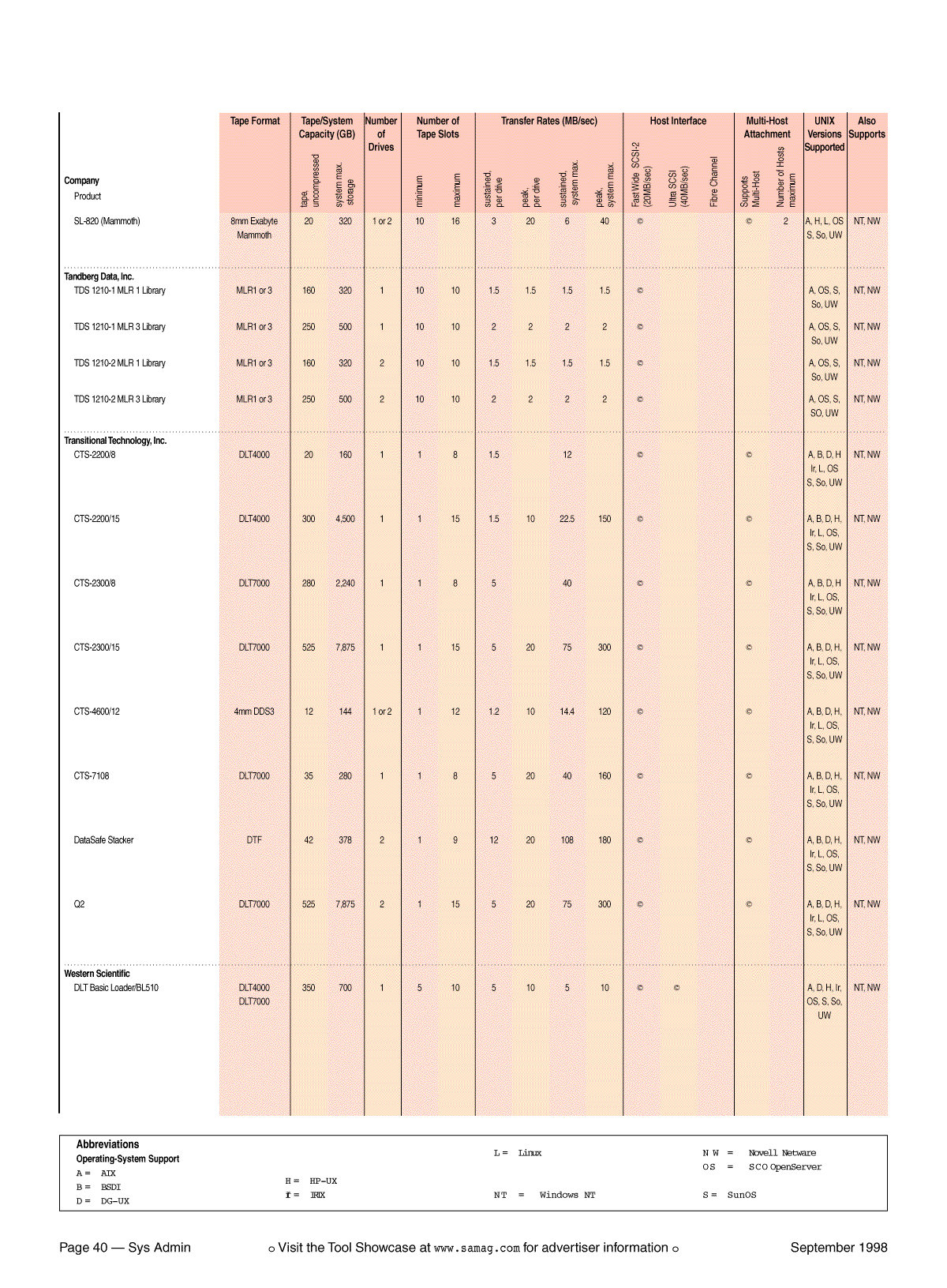 Table 2: Desktop Tape Library Buyer's Guide