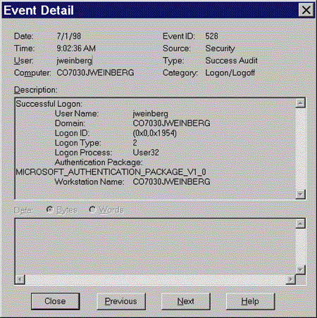 Figure 1: An NT Logon Event - Viewed with the Event Viewer