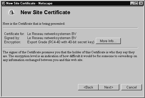 Figure 3: Subsequent screen displaying certificate information