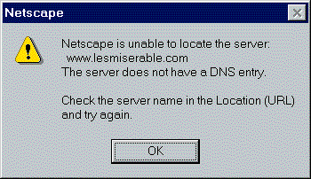 Figure 1: In the wonderful world of Web browsing the inability to locate a server can result from a variety of problems ranging from an improper URL to traffic on the Internet.