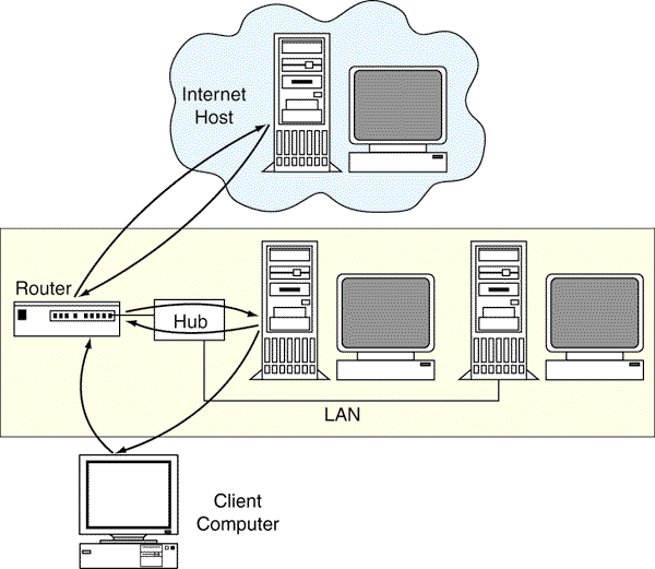 Figure 3: Normal access to the Internet server where the client computer accesses Internet host directly through the router. The router redirects the request through the proxy server which is acting as transparent proxy