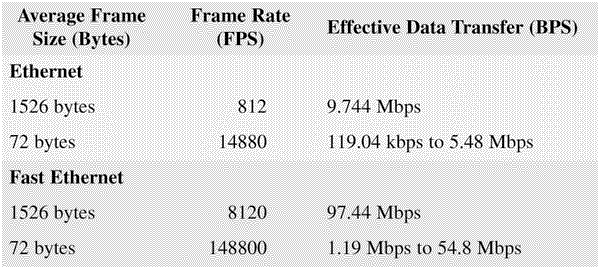 Table 1: Ethernet vs fast Ethernet frame rates and effective data transfer capability