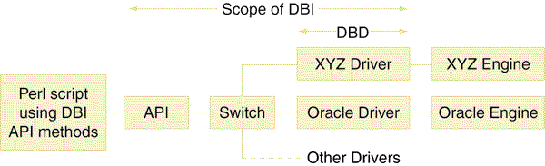 Figure 1: DBI/DBD architecture (NOTE: Figure taken from the DBI perldoc manual)