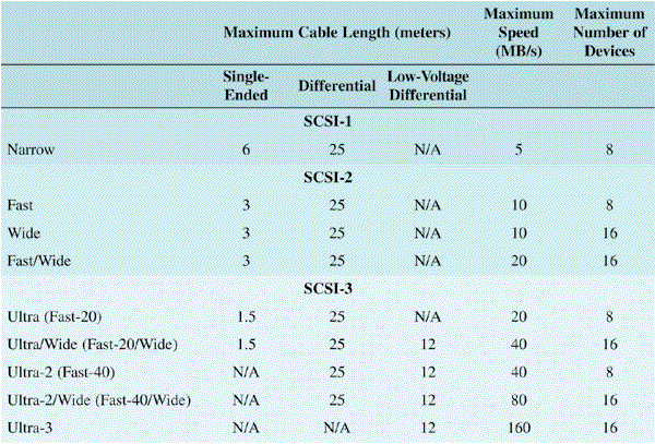 Table 1: SCSI characteristics