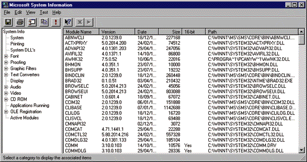 Figure 3: Output from MSINFO32.EXE Active Modules