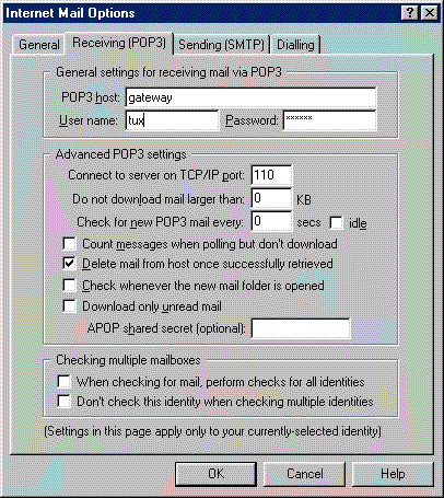 Figure 3: Pegasus mail configuration screen
