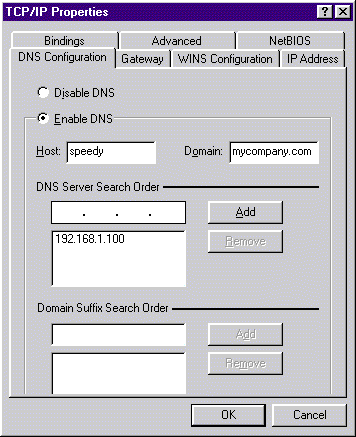 Figure 2: Adding DNS entries using Windows 9x Control Panel