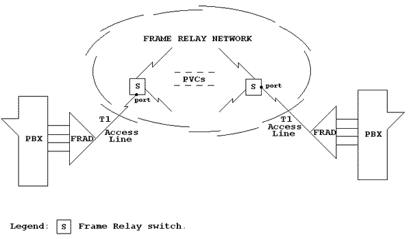Figure 1: Using voice capable FRADs to transport voice over a Frame Relay network