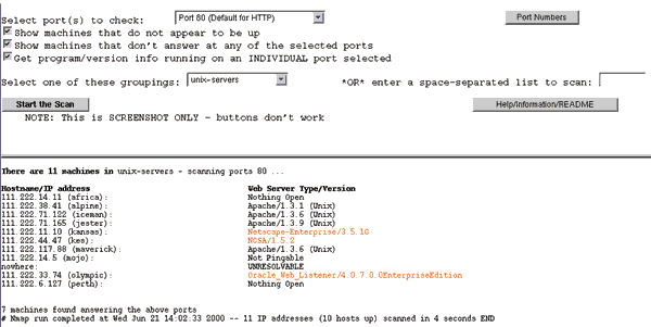 scan of port 80 to determine who is running a Web server and what version