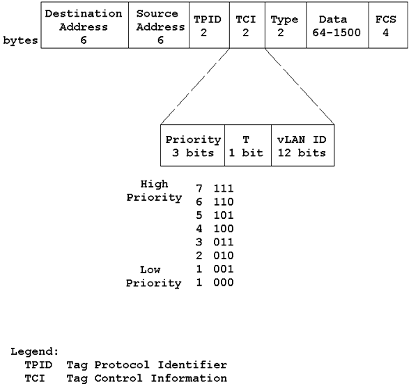 Figure 3: IEEE Traffic prioritization uses 3 bits in the two-byte Tag Control Information field, which represents half of the four byte virtual LAN frame extension