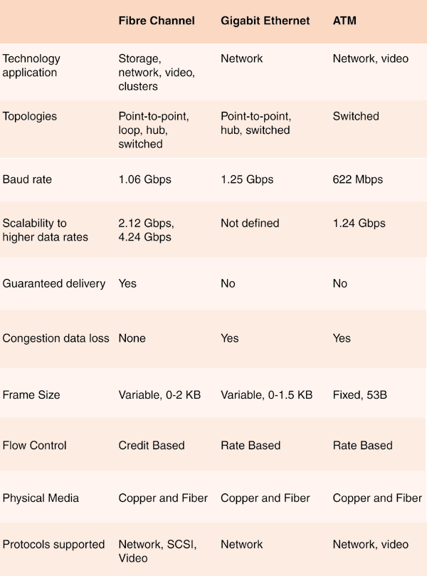 Table 1: Fibre Channel Technology Comparison