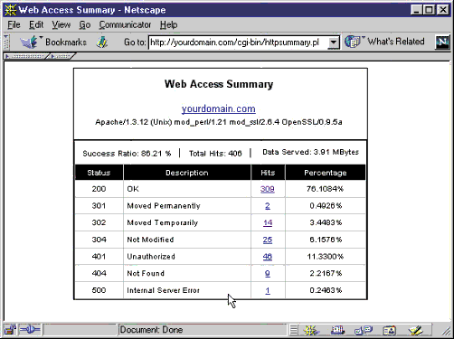 Figure 1: Summary Status Code 401 for a document (HTML mode only)