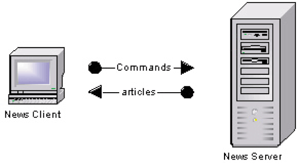 Figure 1: A news client sends commands to the news server requesting specific articles within a newsgroup