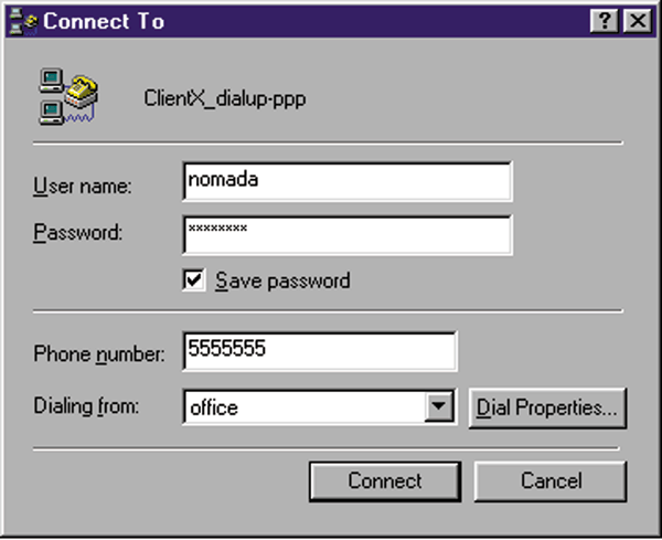 Figure 4: Windows dial-up neworking connection screen