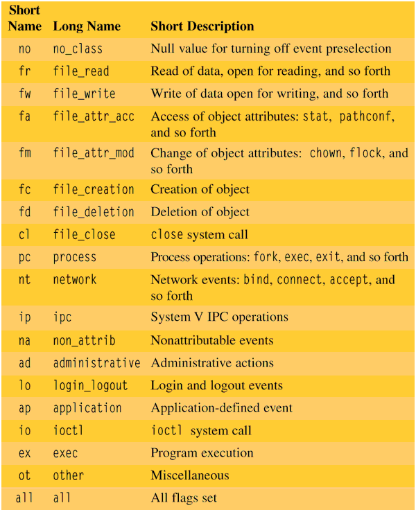Table 1: Event classes (Source Solaris Answerbook)