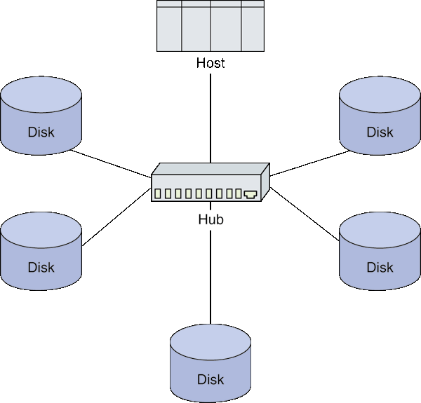 Arbitrated loop using a hub