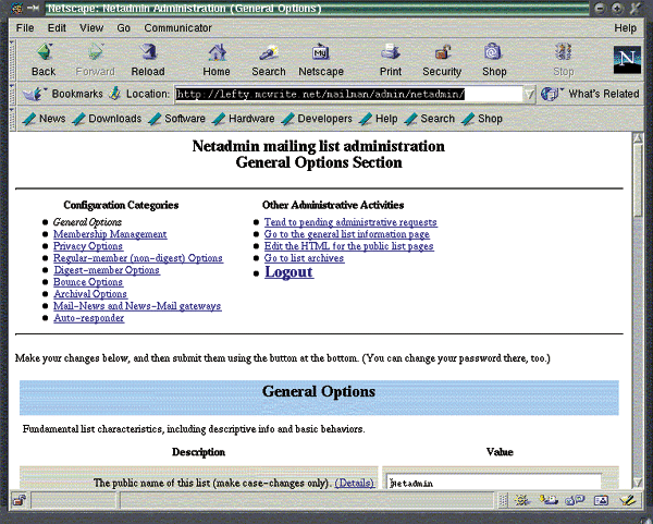 Mailing list admin