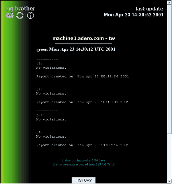 Example of Big Brother Web page (showing clean runs)