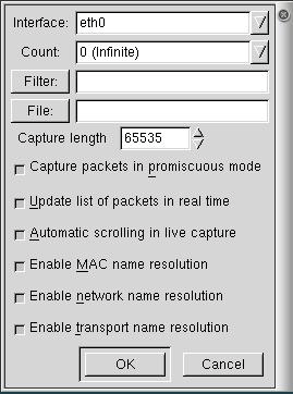The capture options dialog box