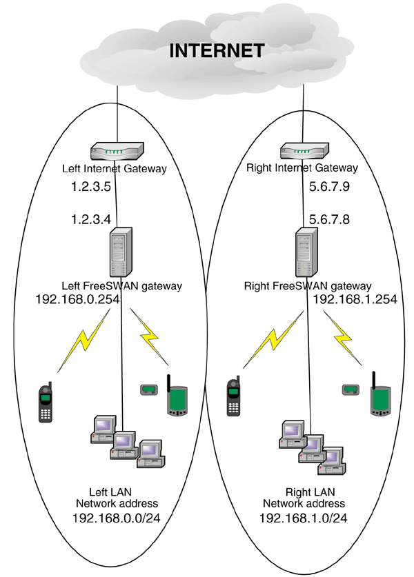 Tunnel mode subnet-to-subnet VPN (Listings 1(c), 1 (d)).