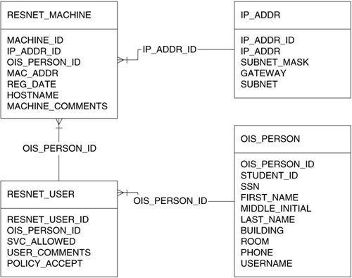 Greatly simplified schema for our core Oracle database