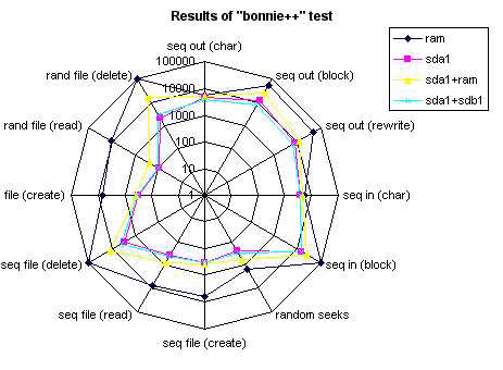 Figure 2 bonnie++ tests with no caching. Values at 100,000